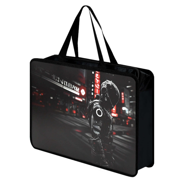 Папка с ручками А4 1отд., пластик, молния "Гонщик в шлеме" 72349 Феникс+