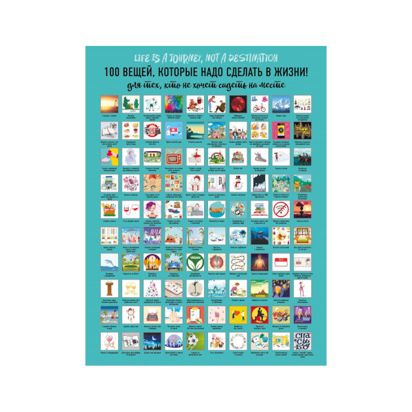 Доп. описание: Жизнь так коротка, а вокруг столько всего, что вы еще не пробовали. Мы подготовили для вас плакат "100 вещей, которые нужно сделать в жизни!" Запишите свой подкаст, погуляйте под дождем или позавтракайте в любимом кафе. Здесь вы найдете много интересных идей: приятных, немного экстремальных (для любителей пощекотать нервы), расширяющих кругозор, вдохновляющих на путешествия, новые знакомства и многих других. Для удобства на плакате есть подписи под скретч-слоем, выбирайте то, чем хотите заняться сегодня, отправляйтесь в ваше индивидуальное приключение и стирайте скретч-слой по его завершении. Добавьте в вашу жизнь красок!