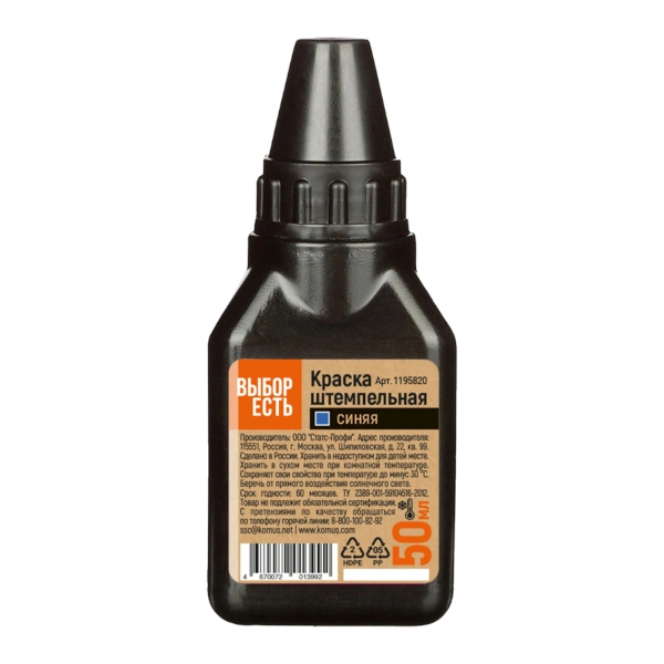 Доп. описание: Краска штемпельная Выбор есть (Attache) синяя на водной основе. Объем флакона 50 г. Флакон снабжен дозатором, обеспечивающим равномерное нанесение краски на подушку. Назначение: для бумаги.
