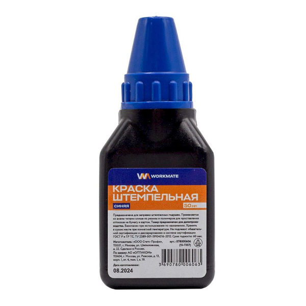 Доп. описание: Штемпельная краска Workmate синего цвета на водной основе для дозаправки настольных штемпельных подушек. Используется с резиновым и полимерным клише. Предназначена для всех видов бумаги (кроме глянцевой) и картона. Флакон имеет дозатор, цвет указан на этикетке. Объем 50 мл.