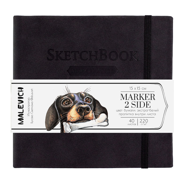 Скетчбук для маркеров 150*150мм 40л, 220г/м2, сшивка, мокр.асфальт, резинка 401145 Малевичъ