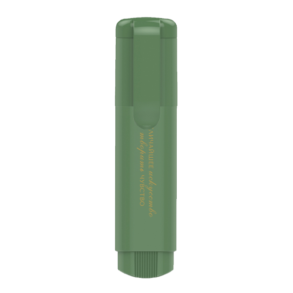 Доп. описание: Текстовыделитель оливковый. Скошенный наконечник обеспечивает толщину линии письма от 1 до 5 мм. Стойкие чернила позволяют использовать текстовыделитель на бумаге любой плотности. Колпачок снабжен специальным зажимом, с помощью которого можно прикрепить маркер к любой обложке.