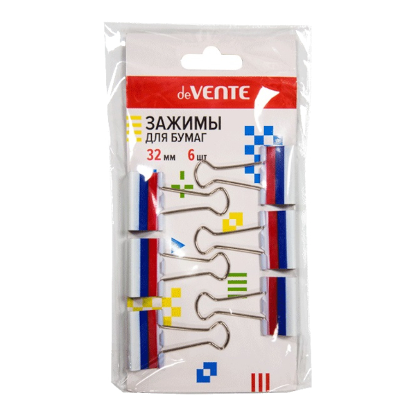 Зажим 32мм ассорти "Триколор" 4131321 (1уп*6шт) deVENTE
