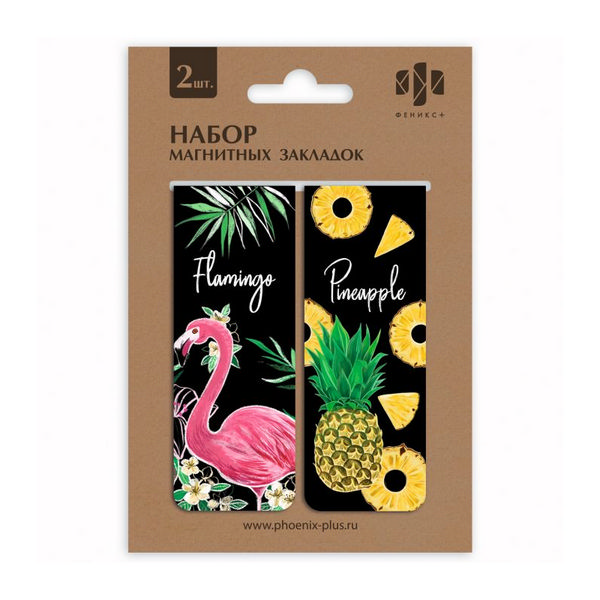 Закладка для книг магнит. "Ананасы и Фламинго" 30*80мм, 2шт Феникс+ 49917