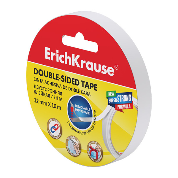 Клейкая лента (скотч) двусторонняя 12мм*10м, 80мкм, прозрачная 58741/19447 Erich Krause