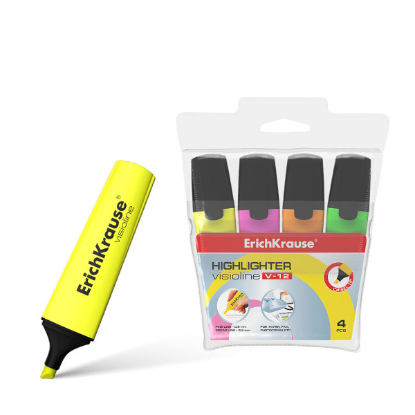 Набор текстовыделителей 4цв Erich Krause "Visioline" скошенный/0,6- 5,2мм, ассорти 32504