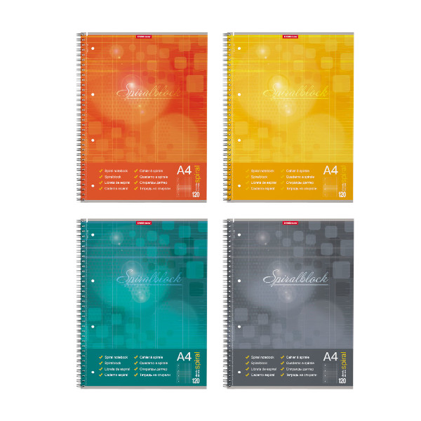 Тетрадь 120л А4 клетка/гребень "Spiralblock" картон, ассорти, перф. 58421 Erich Krause