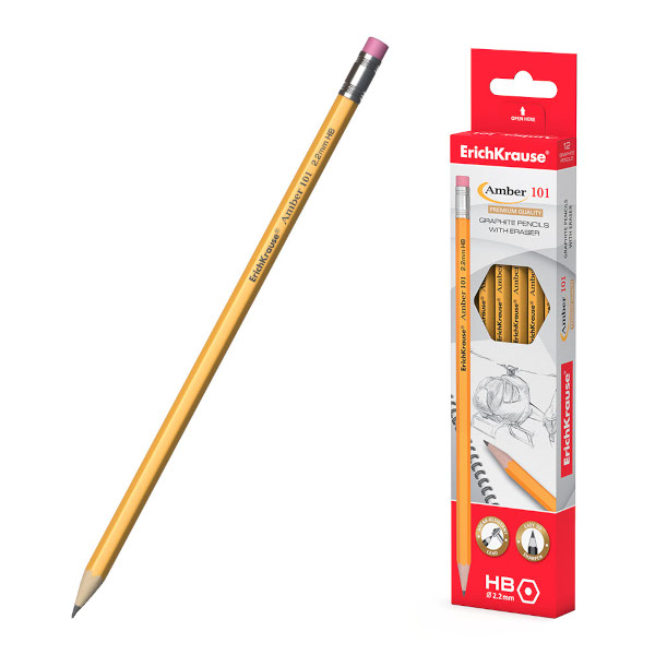 Карандаш ч/гр HB, дерево, 6-гран., ластик, желтый "Amber 101" 45601 Erich Krause