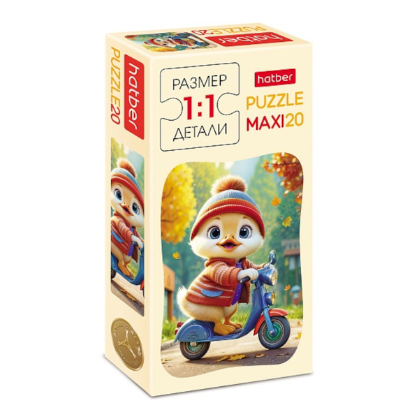 Пазлы 20 элем. дет. MAXI "Утенок на скутере" А5 165*230мм 20ПЗ5_34719 Hatber