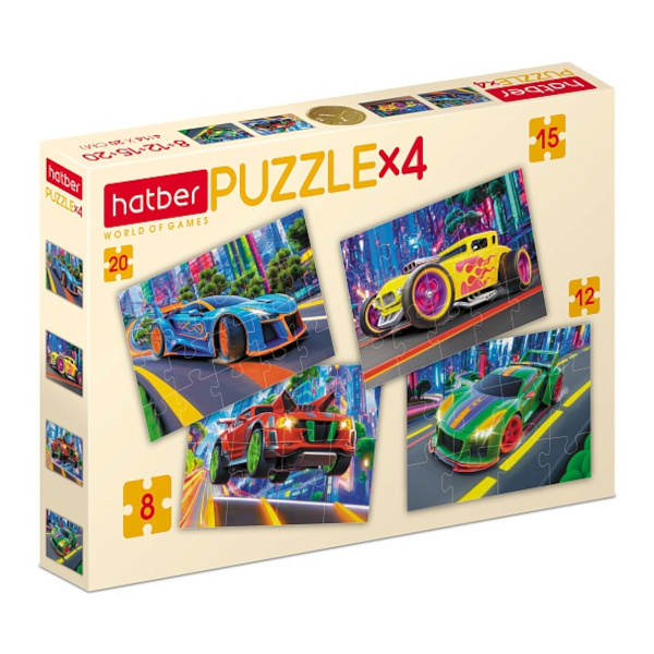 Пазлы 8, 12, 15, 20 элем. дет. "4 в 1. Неоновый драйв" А5 200*140мм ПЗ5_34767 Hatber