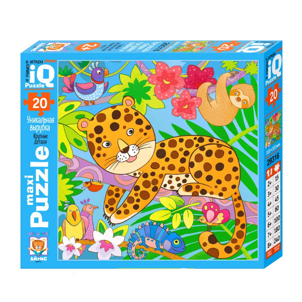 Пазлы 20 элем. "IQ MAXI. Леопард в ярких джунглях" 320*320мм 29316 Айрис-Пресс