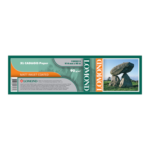 Бумага А0+ рулон Lomond 914мм*45м*51мм 90г/м2 САПР и ГИС мат. (1202012)